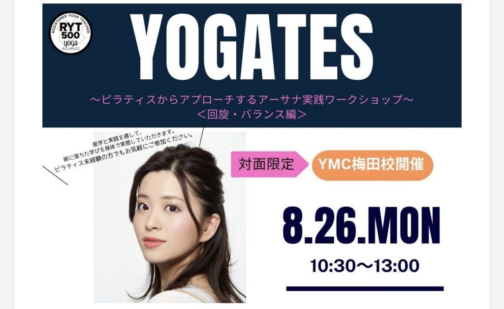 本日は、美都くらら先生の~YOGATES:ピラティスからアプローチするアーサナ実践WS≪回旋・バランス編≫~に参加してまいりました。(in YMCメディカルトレーナーズスクール大阪梅田校)